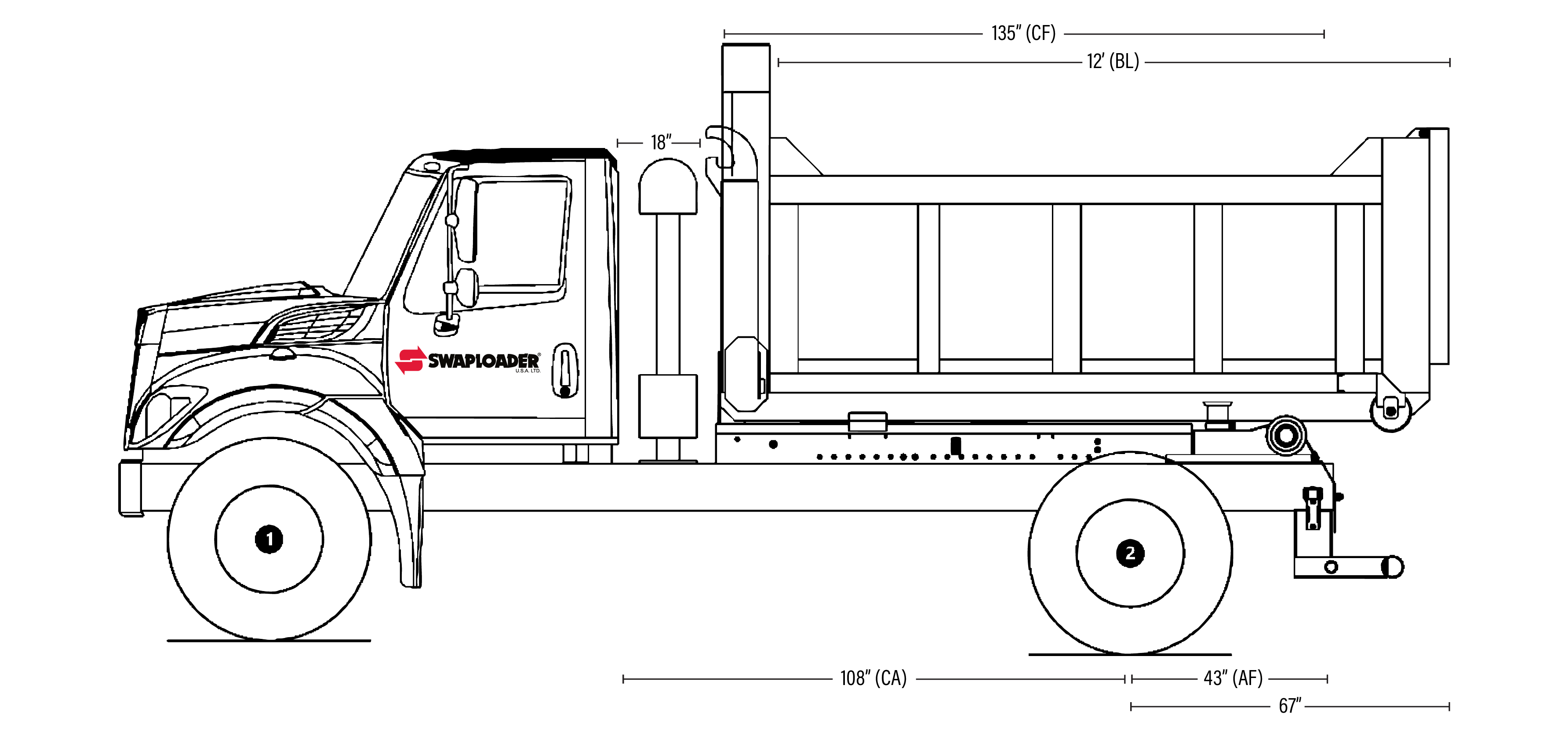 | CAB-AXLE DIMENSIONS* (Single Axle) | 84″ – 96″ |