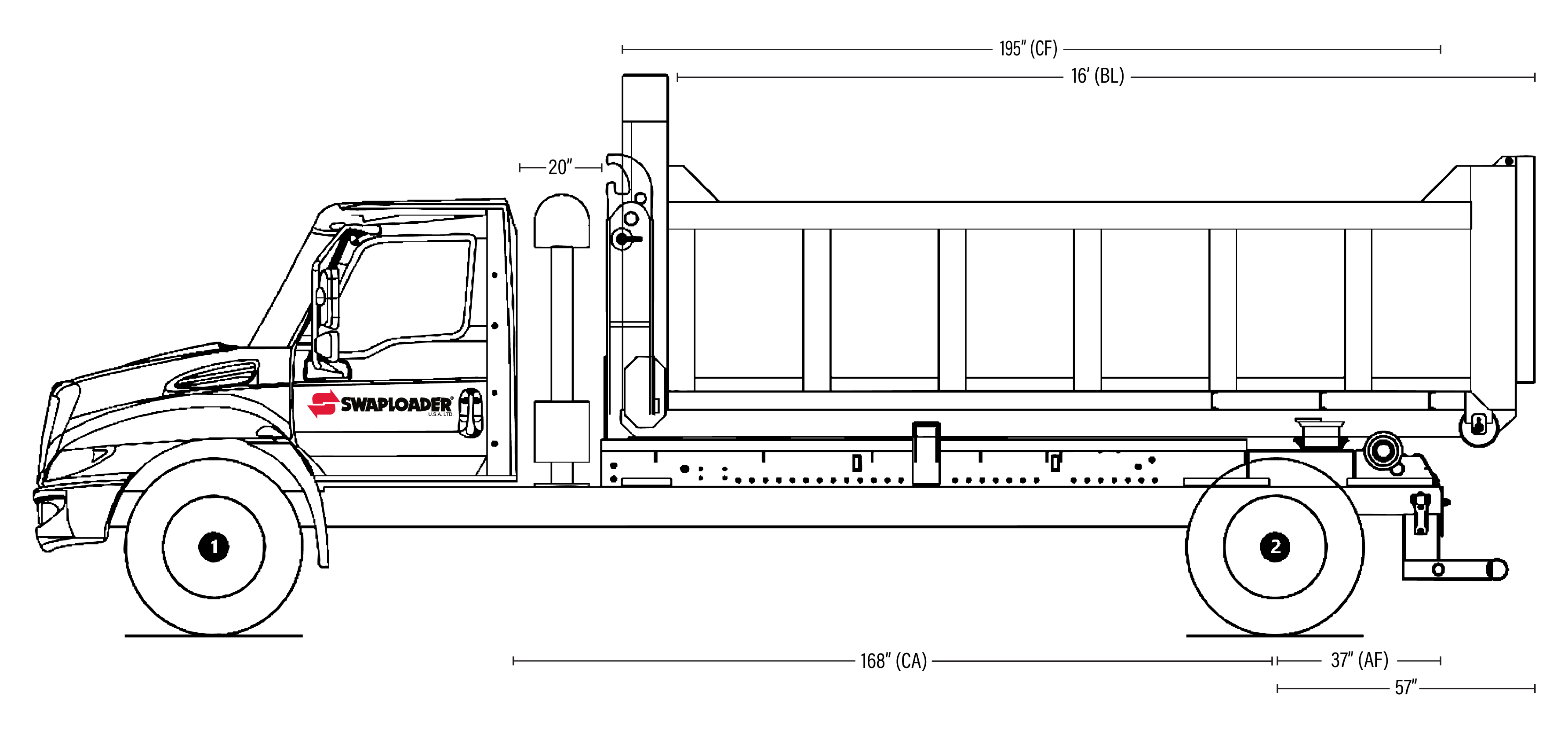 | CAB-AXLE DIMENSIONS* (Single Axle) | 142″ – 156″ |